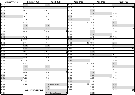 1755 calendar