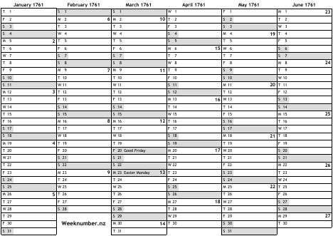 1761 calendar