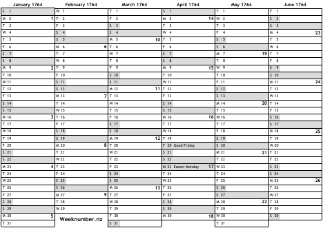 1764 calendar