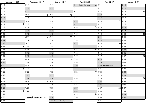 1247 calendar