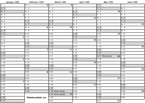 1255 calendar