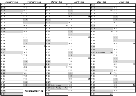 1266 calendar
