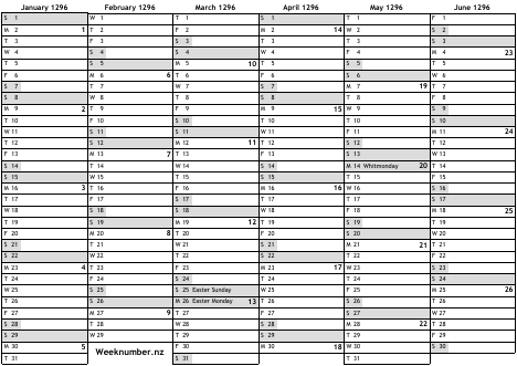 1296 calendar