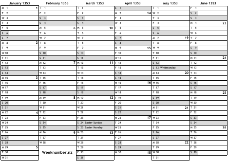 1353 calendar