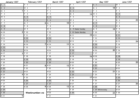 1357 calendar