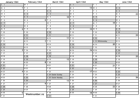 1364 calendar