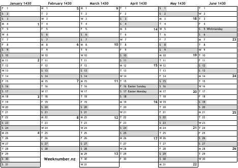 1430 calendar