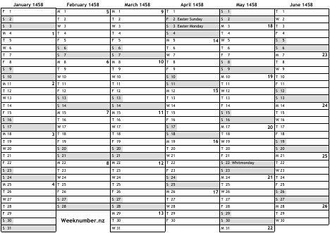 1458 calendar