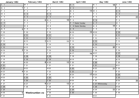 1482 calendar
