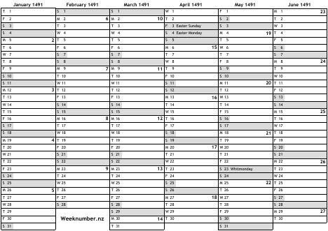 1491 calendar