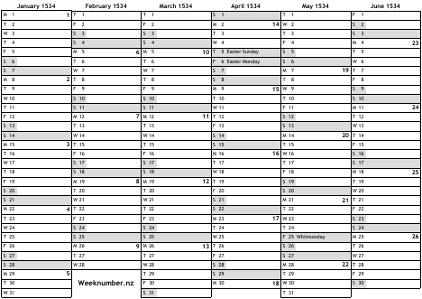 1534 calendar