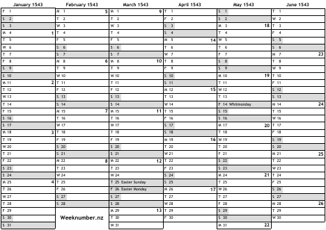 1543 calendar