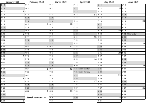 1549 calendar
