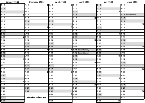 1582 calendar