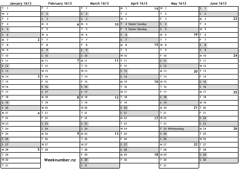 1613 calendar