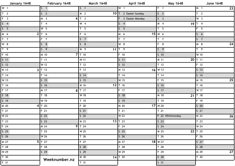 1648 calendar