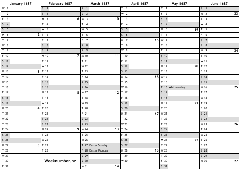 1687 calendar