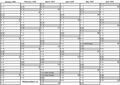 1692 calendar