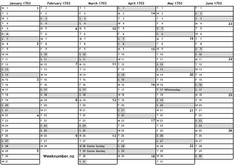 1703 calendar