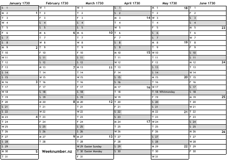 1730 calendar