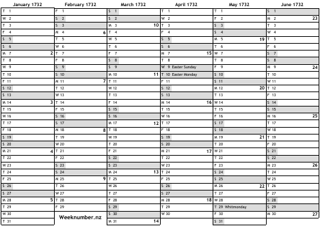 1732 calendar