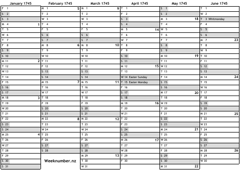 1745 calendar