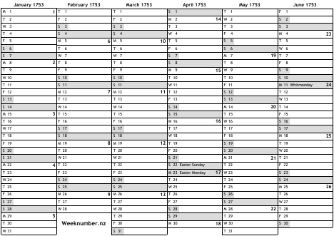 1753 calendar
