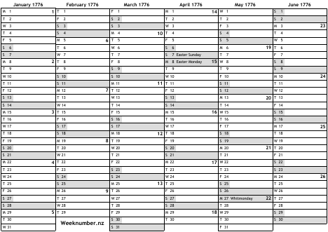 1776 calendar