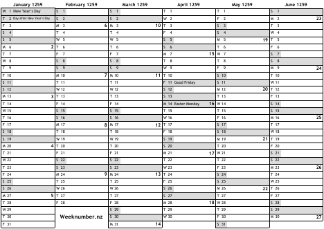 1259 calendar