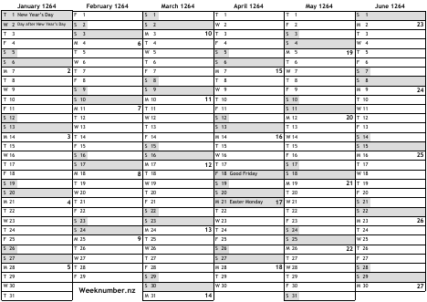 1264 calendar