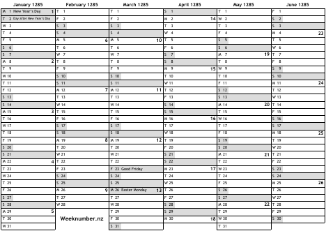 1285 calendar