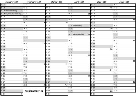 1289 calendar