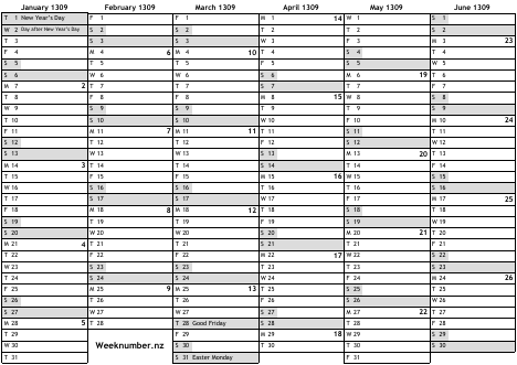 1309 calendar
