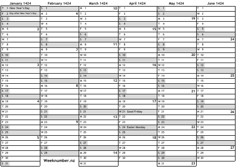 1424 calendar