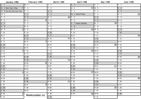 1488 calendar