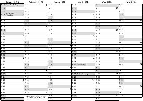 1492 calendar