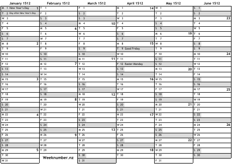 1512 calendar
