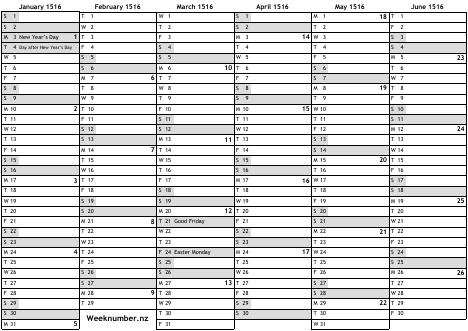1516 calendar