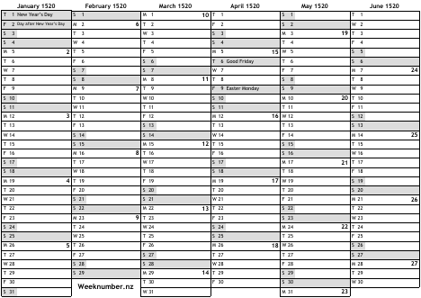 1520 calendar