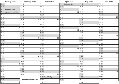 1521 calendar