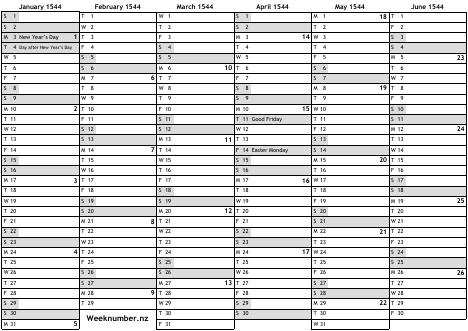 1544 calendar
