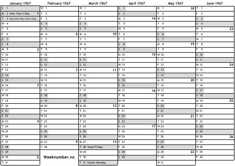 1567 calendar