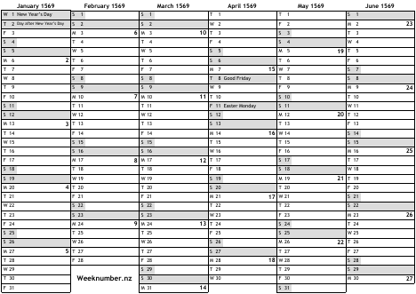 1569 calendar