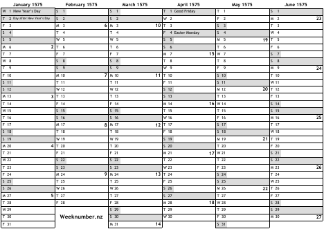 1575 calendar