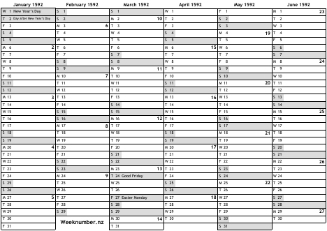 1592 calendar