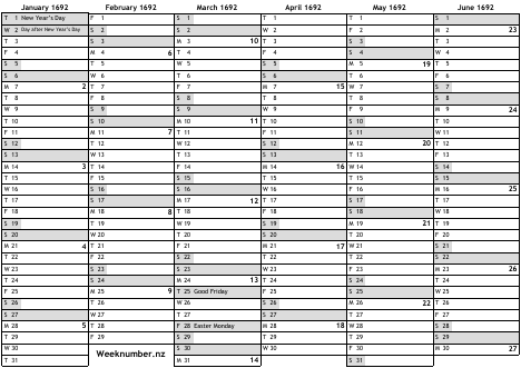 1692 calendar