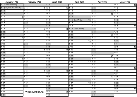 1705 calendar