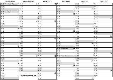 1717 calendar