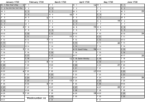 1720 calendar