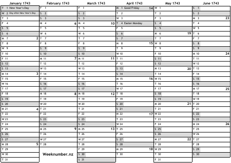 1743 calendar